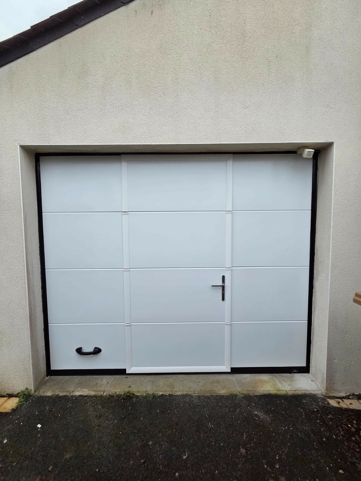 Mise en place d'une porte de garage motorisée sectionnelle de chez LA TOULOUSAINE.