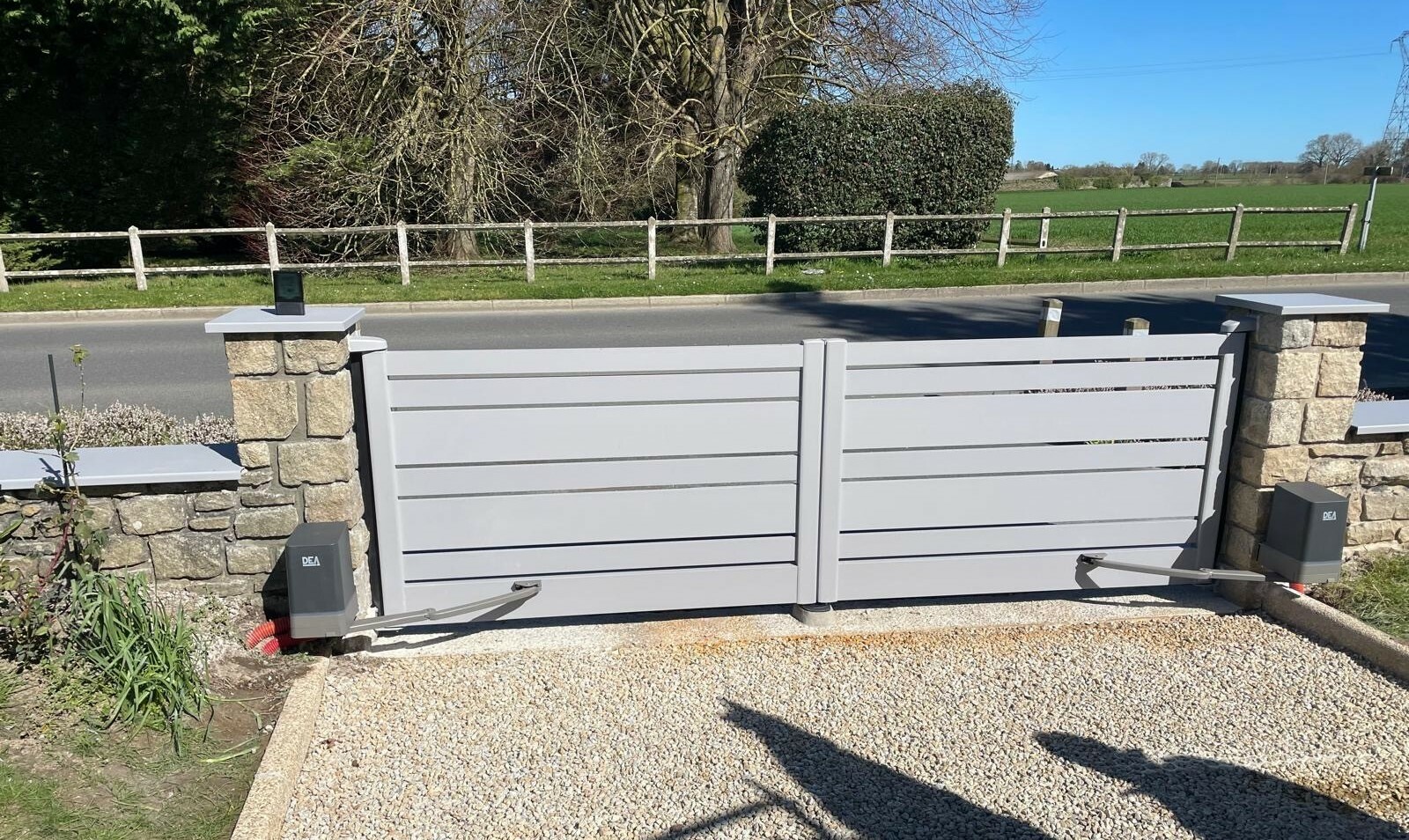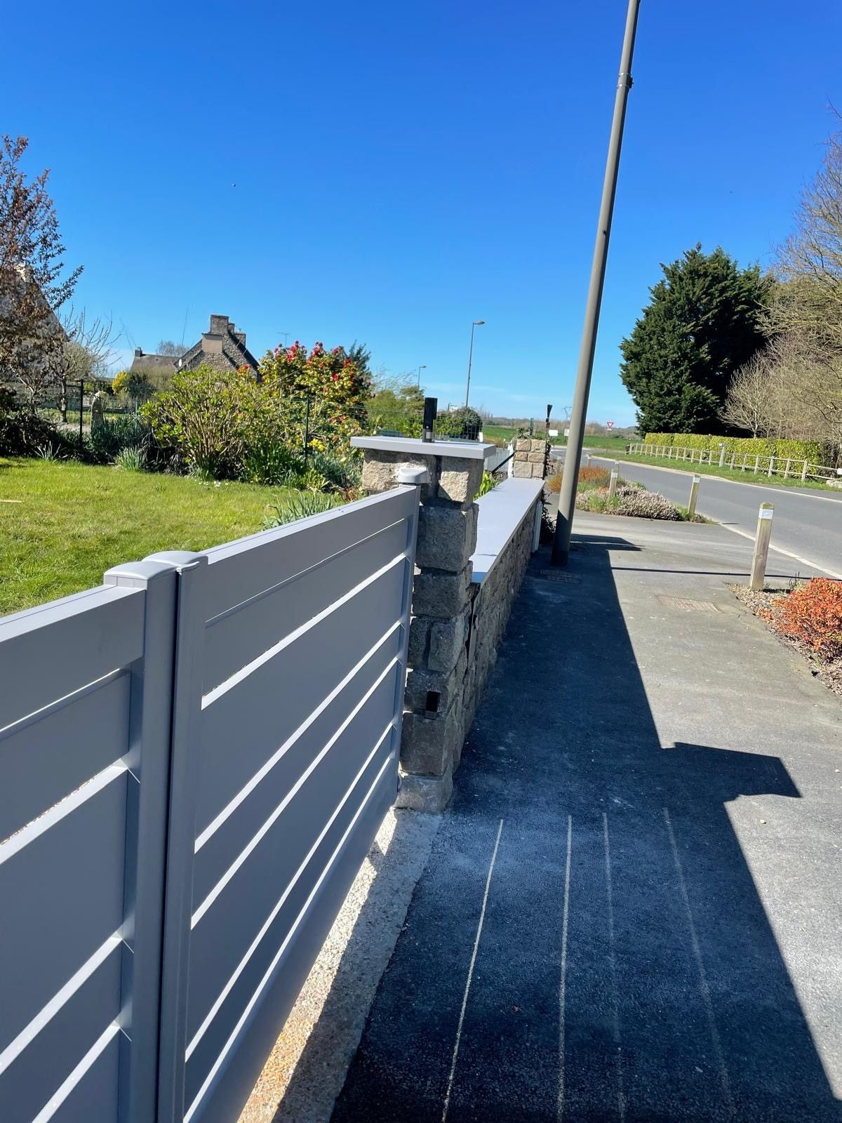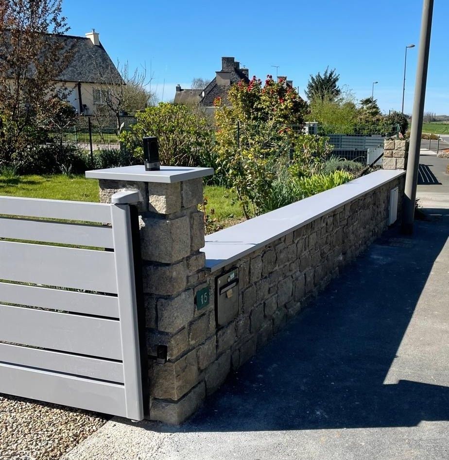 - Portail battant- Barreaux aluminium horizontaux- Couleur : Gris 7004- Motorisation du portail