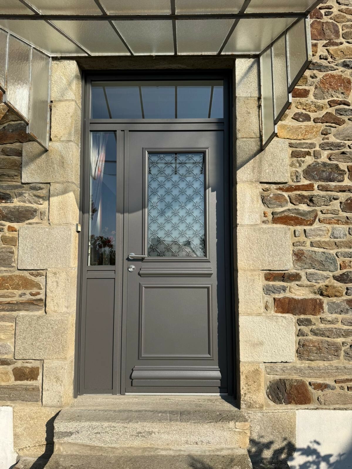 Pose d'une porte d'entrée à Matignon